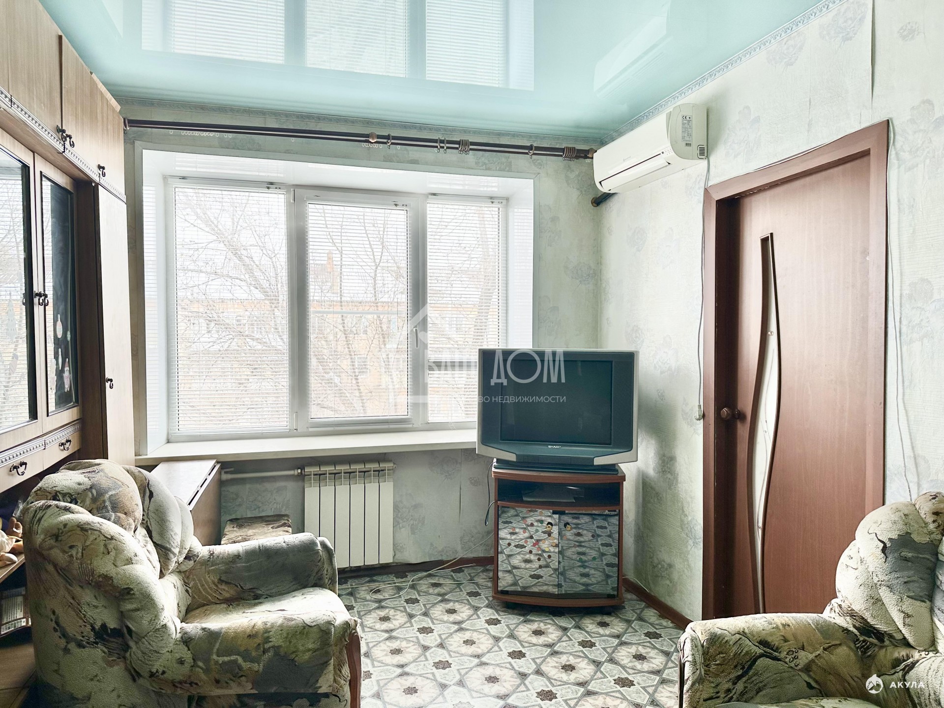 Натяжные потолки. В санузле кафель. Есть кладовая.