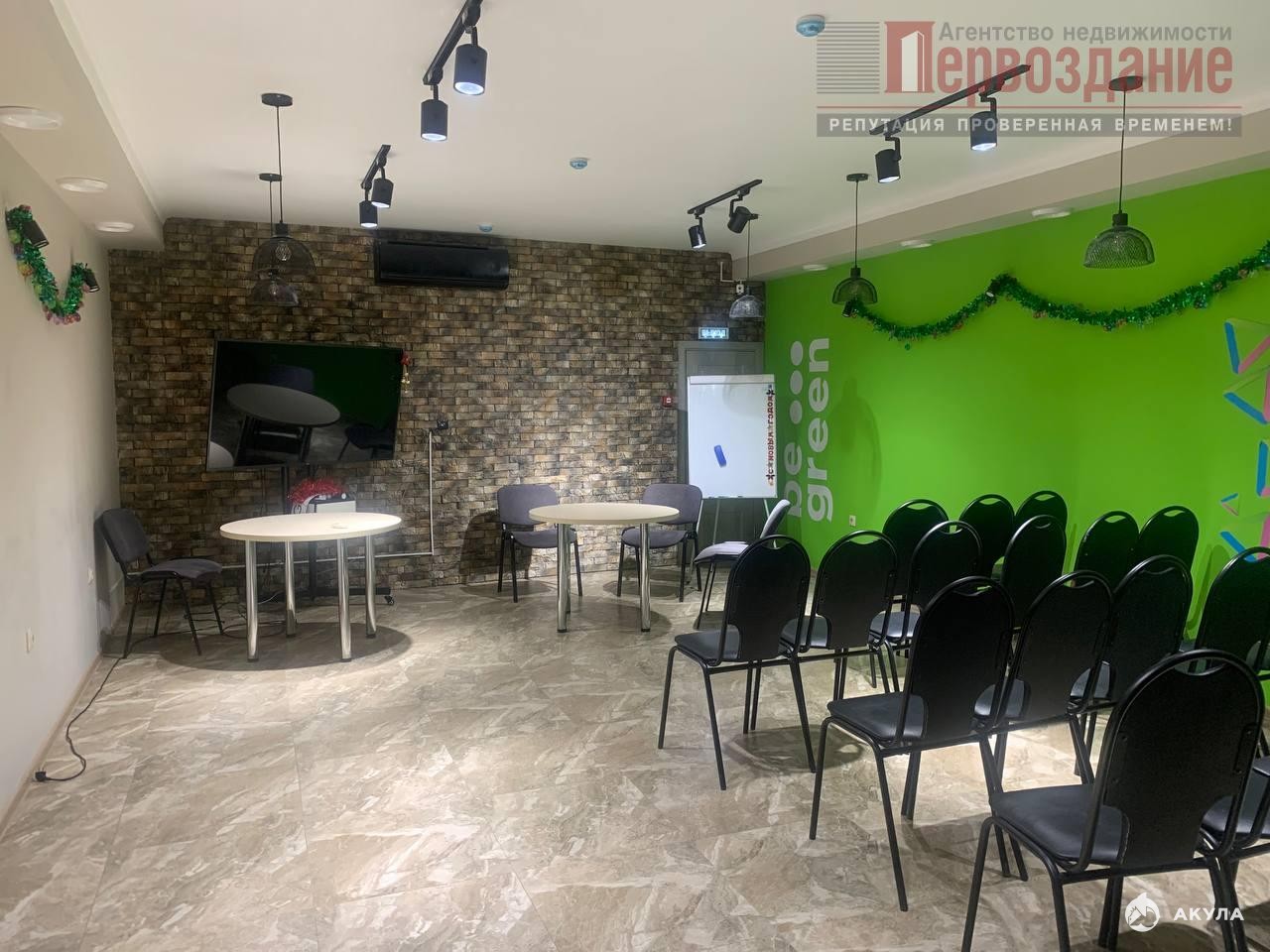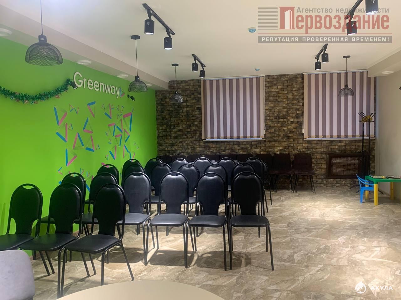 Помещение разделено на 2 просторных зала по 48 м² каждый.