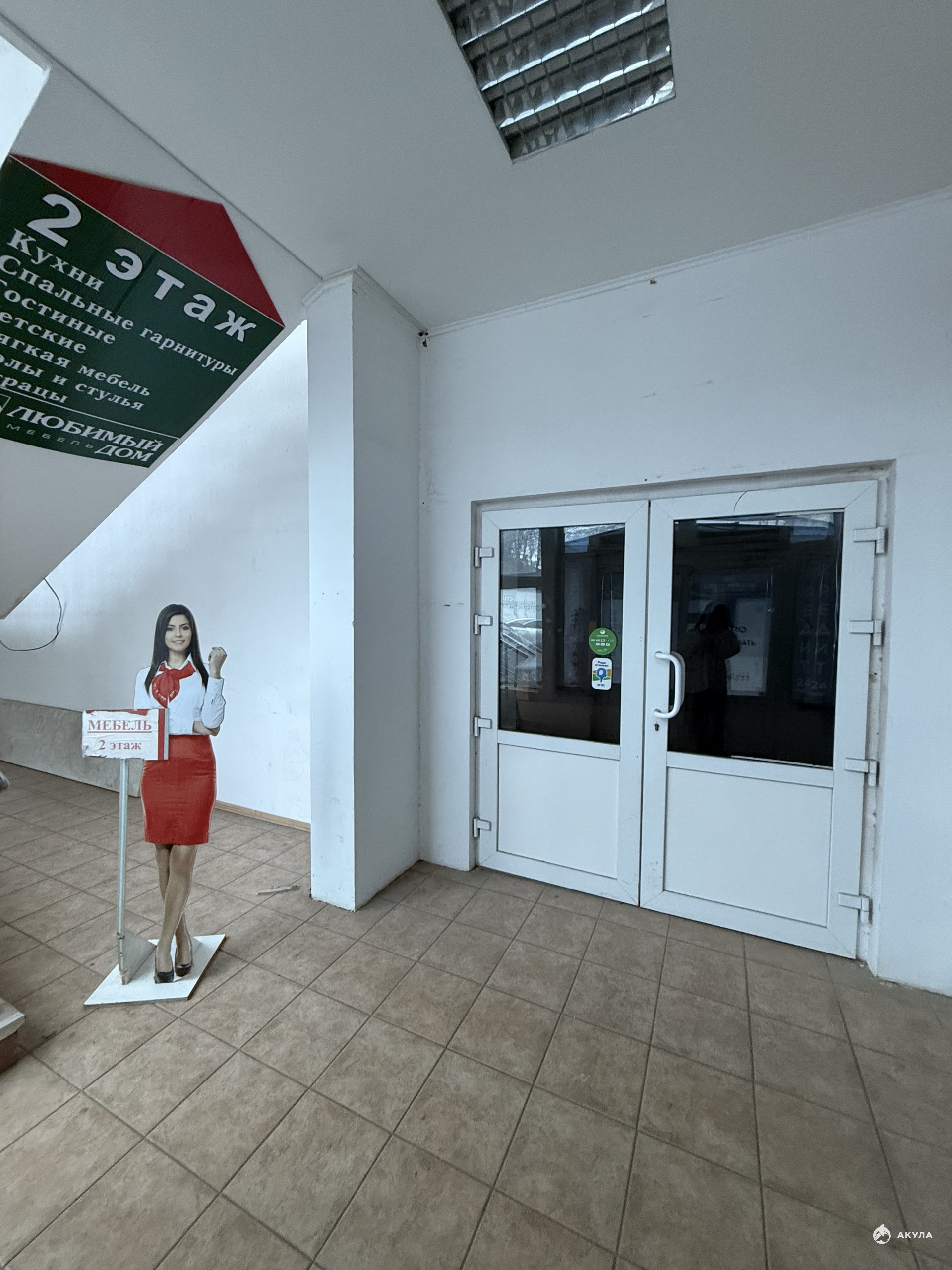 Имеется центральная входная группа , а также запасной выход, который используется как зона разгрузки товара.