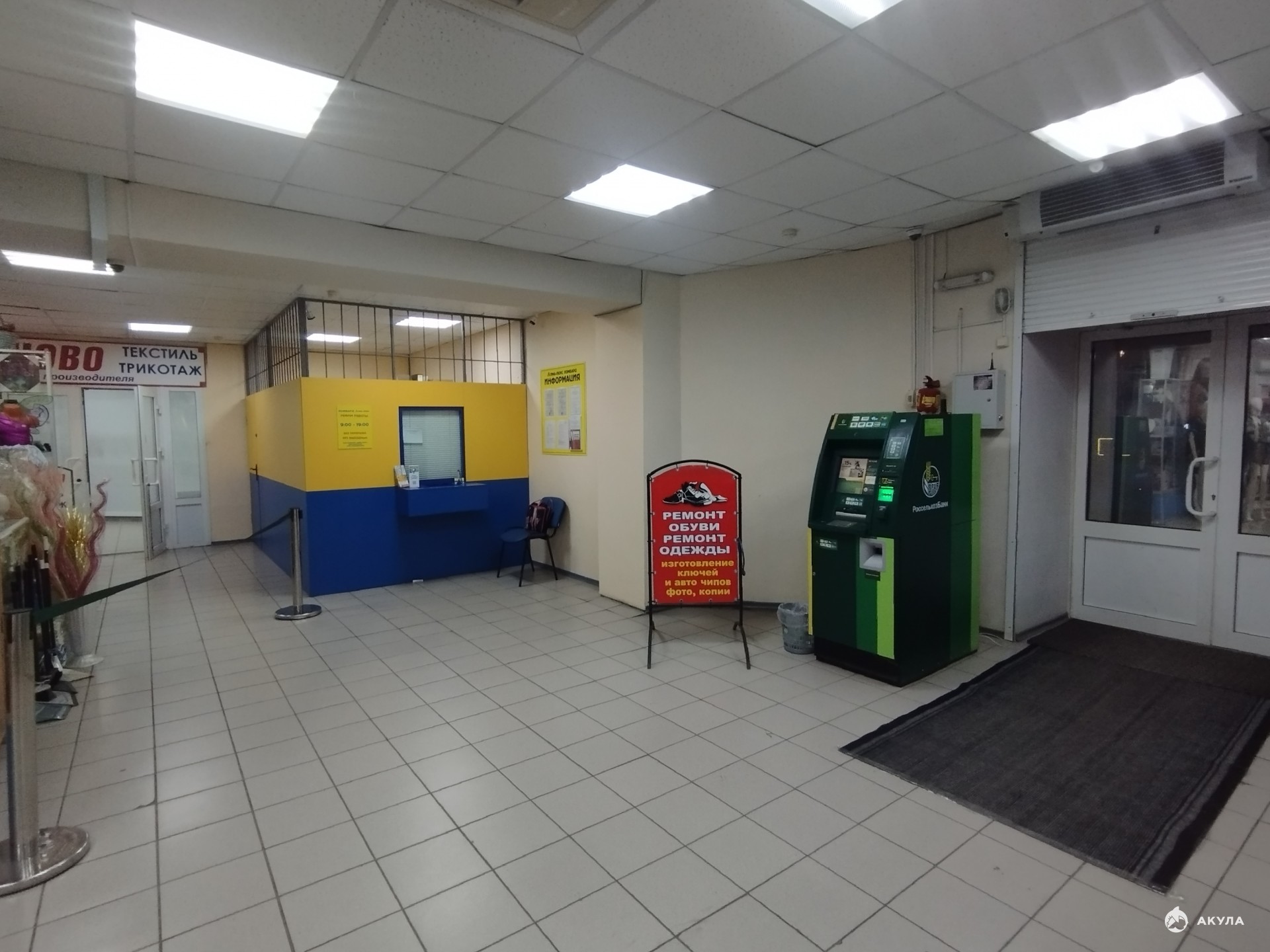 Все помещения расположены рядом с входной группой. Выполнен косметический ремонт. Пол в кафеле, потолок подвесной «Армстронг» со встроенными светильниками, стены окрашены. Торговый центр оснащён системой приточно-вытяжной вентиляции и кондиционирования.