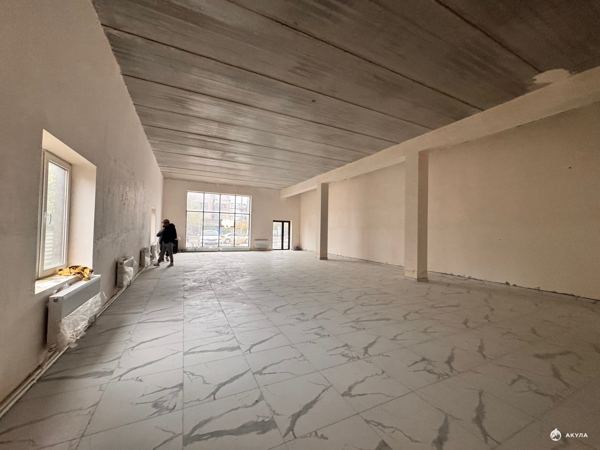 Помещение с ремонтом, за исключением потолка (чистовая отделка потолка на усмотрение арендатора). Электричество, горячее, холодное водоснабжение и отопление заведены и подключены.