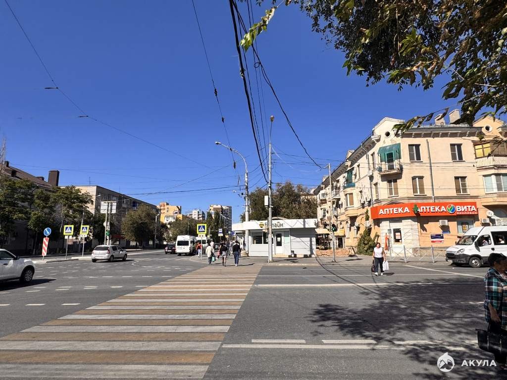 Первая линия домов вдоль дороги, высокий пешеходный и автомобильный трафики.