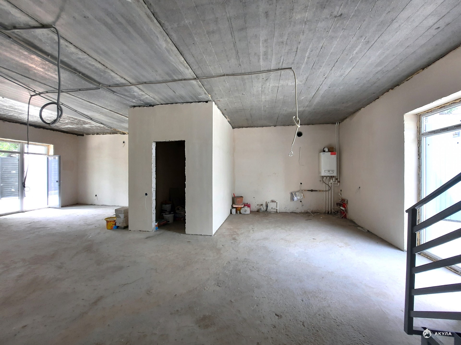 Дом 2023 года постройки. Площадь 162, 5 кв.м. Два этажа возведены из газобетонного блока, с плито-перекрытием, отделка фасада - "короед". Внутренняя отделка - white box, подключены все коммуникации (газо-, электро-, водо- снабжение, канализация автономная - 2 кольца), предусмотрена система "тёплый пол". БОльшее количество окон - панорамные, в пол, Rehau. Фасад дома с экстерьерным освещением.