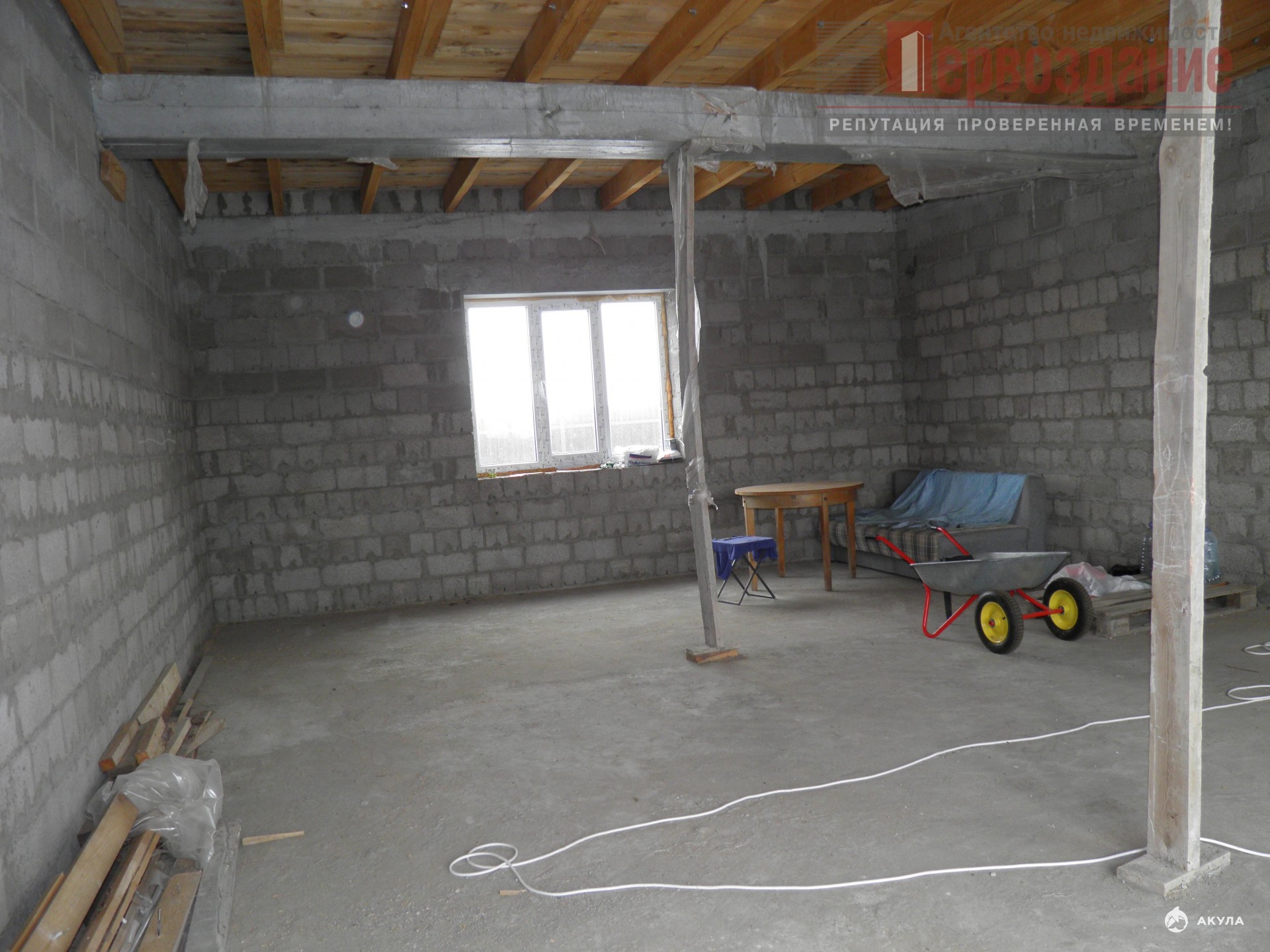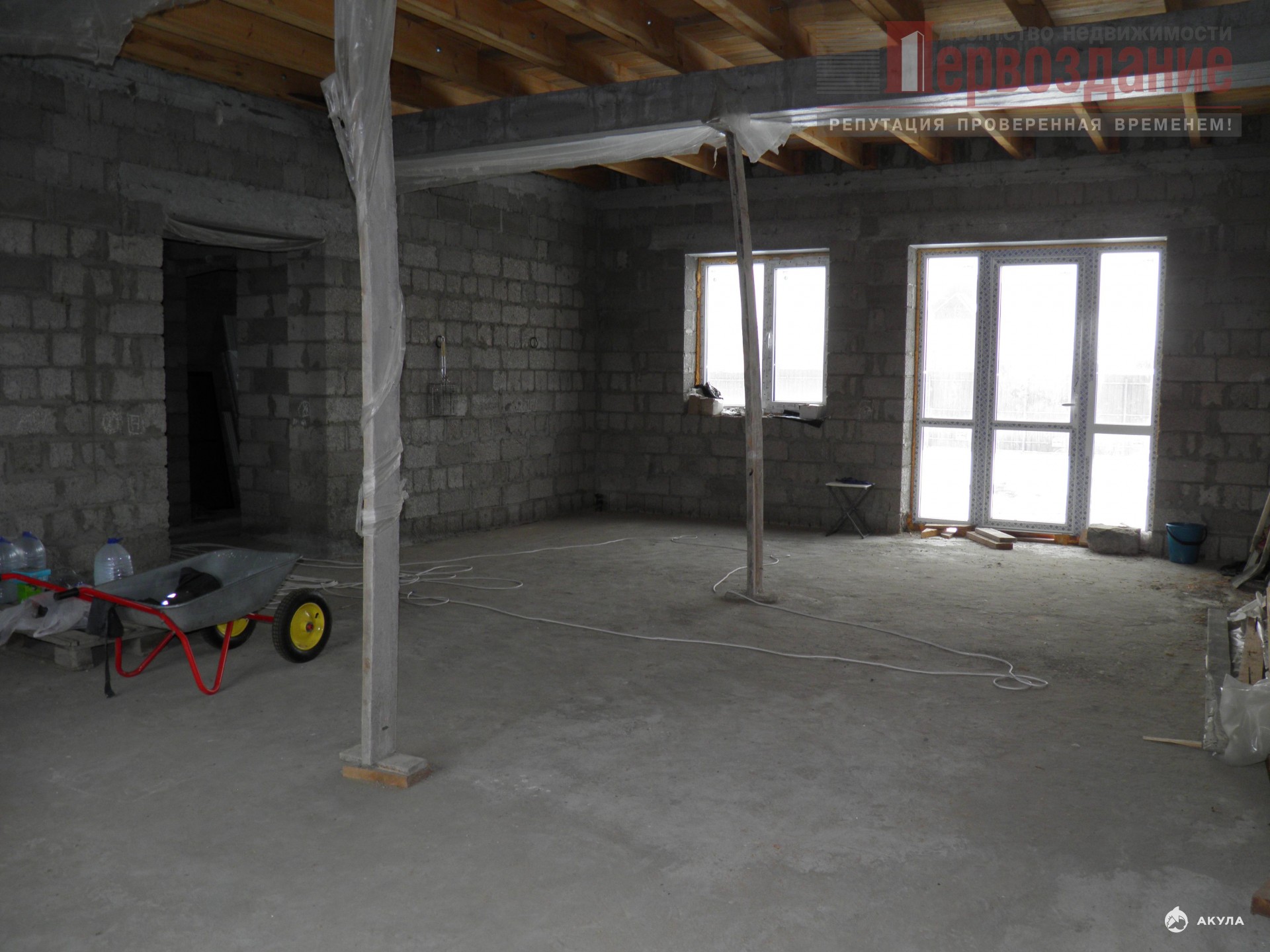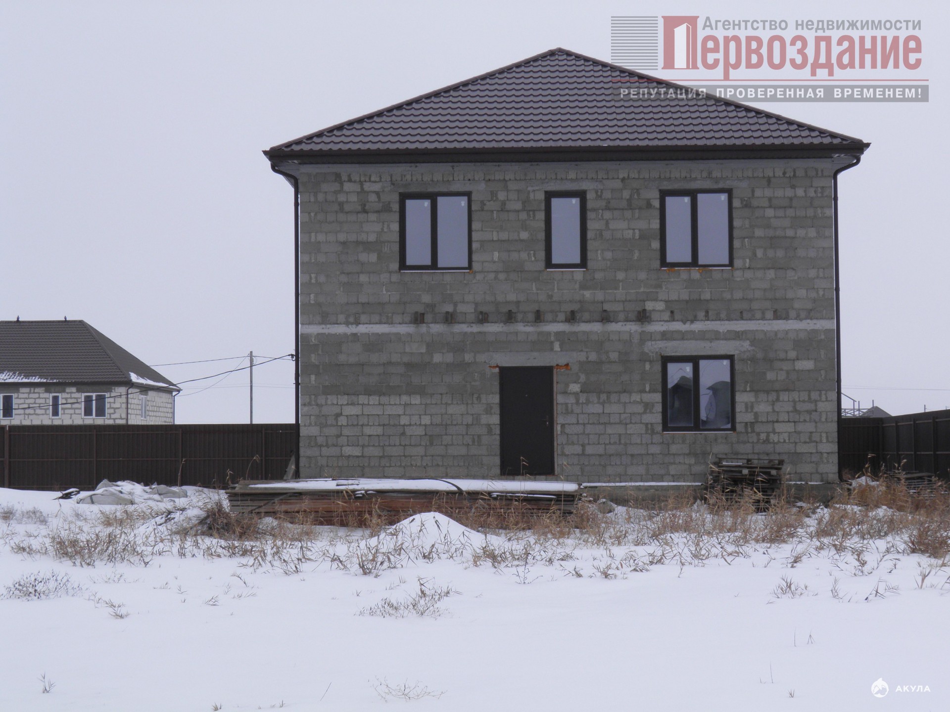 *Общая площадь дома составляет 215, 6 кв. м, он двухэтажный. Высота потолков — 3, 1 м. Оконные блоки выполнены из ПВХ-профиля. В дом уже подведены электричество и водопровод. Стены дома выполнены из керамзитобетона, который обеспечивает хорошую тепло- и звукоизоляцию.