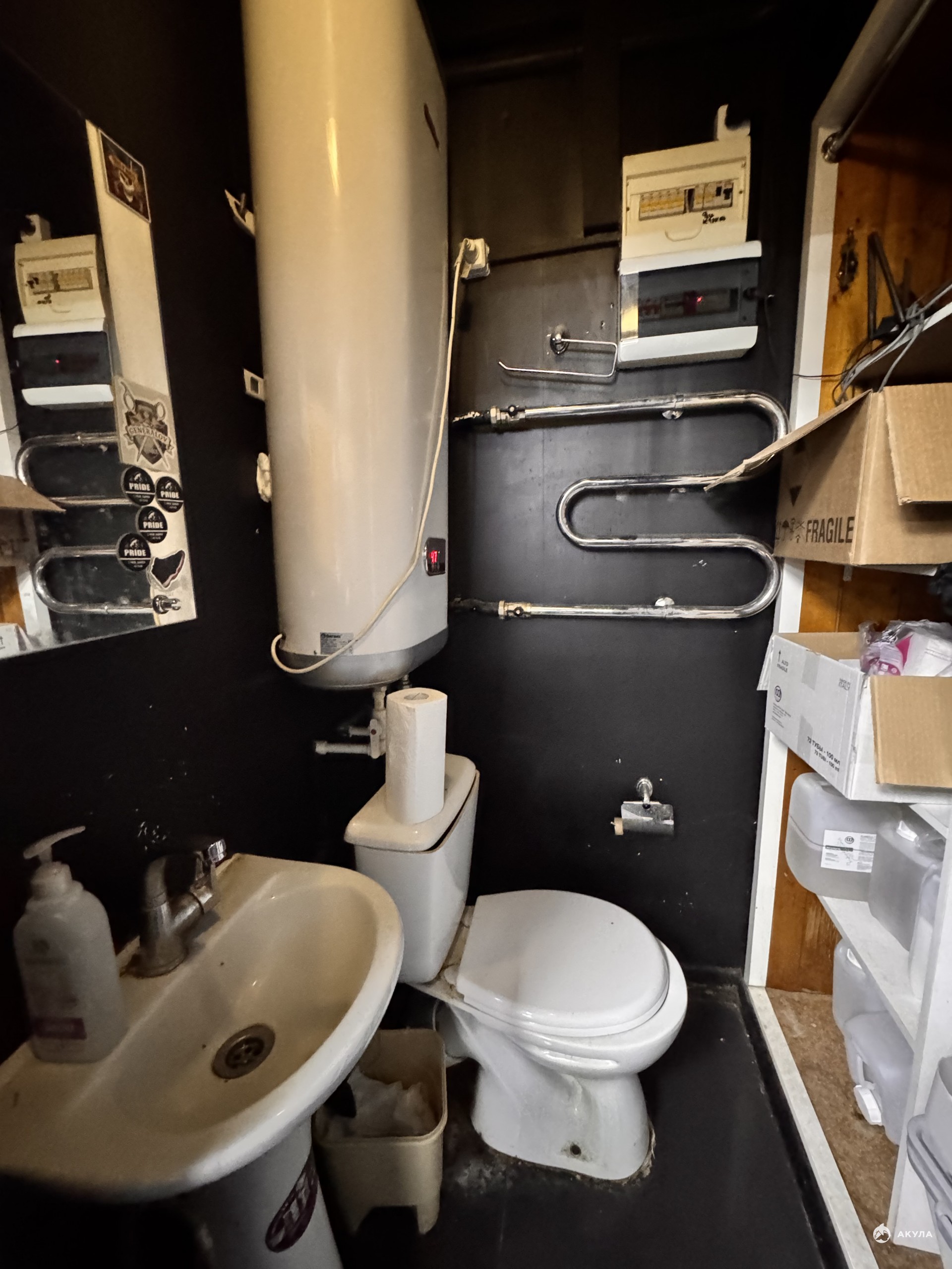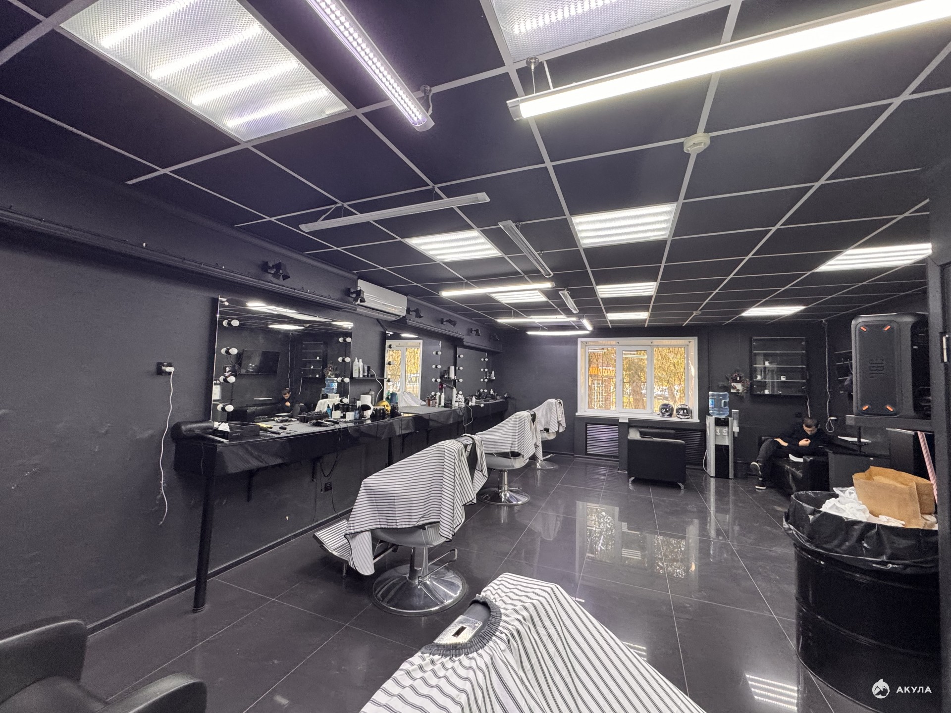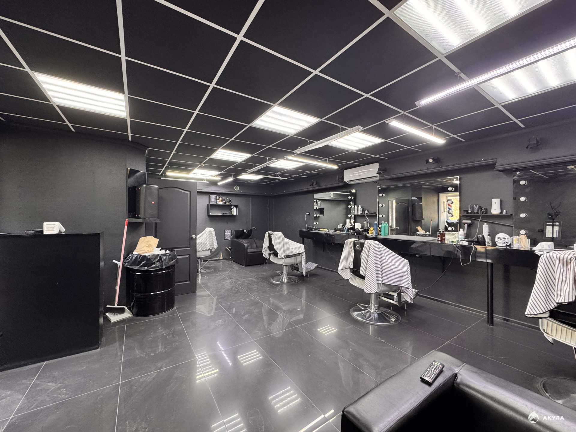 Помещение с ремонтом: на полу - плитка, потолок - армстронг, стены окрашены.