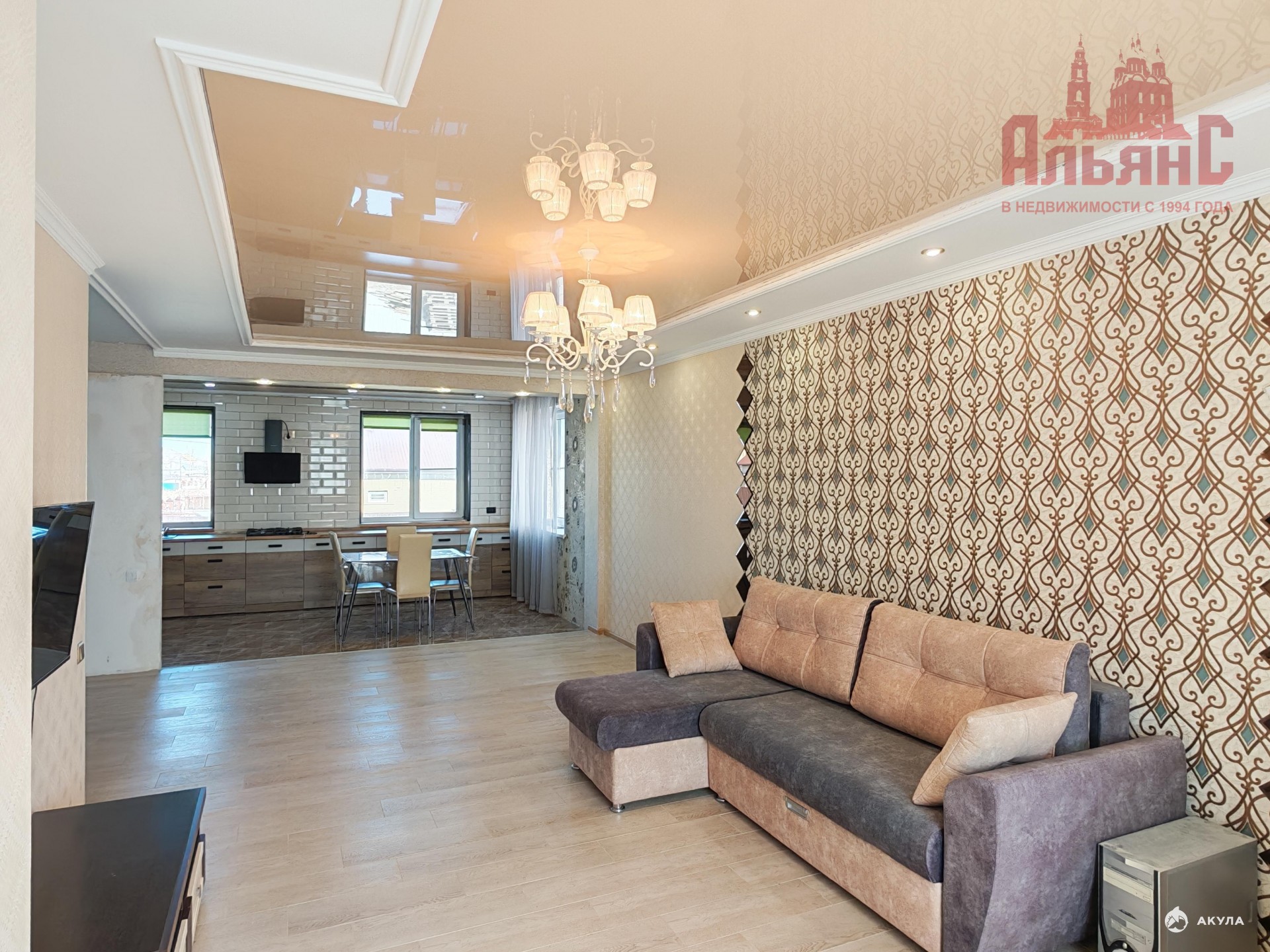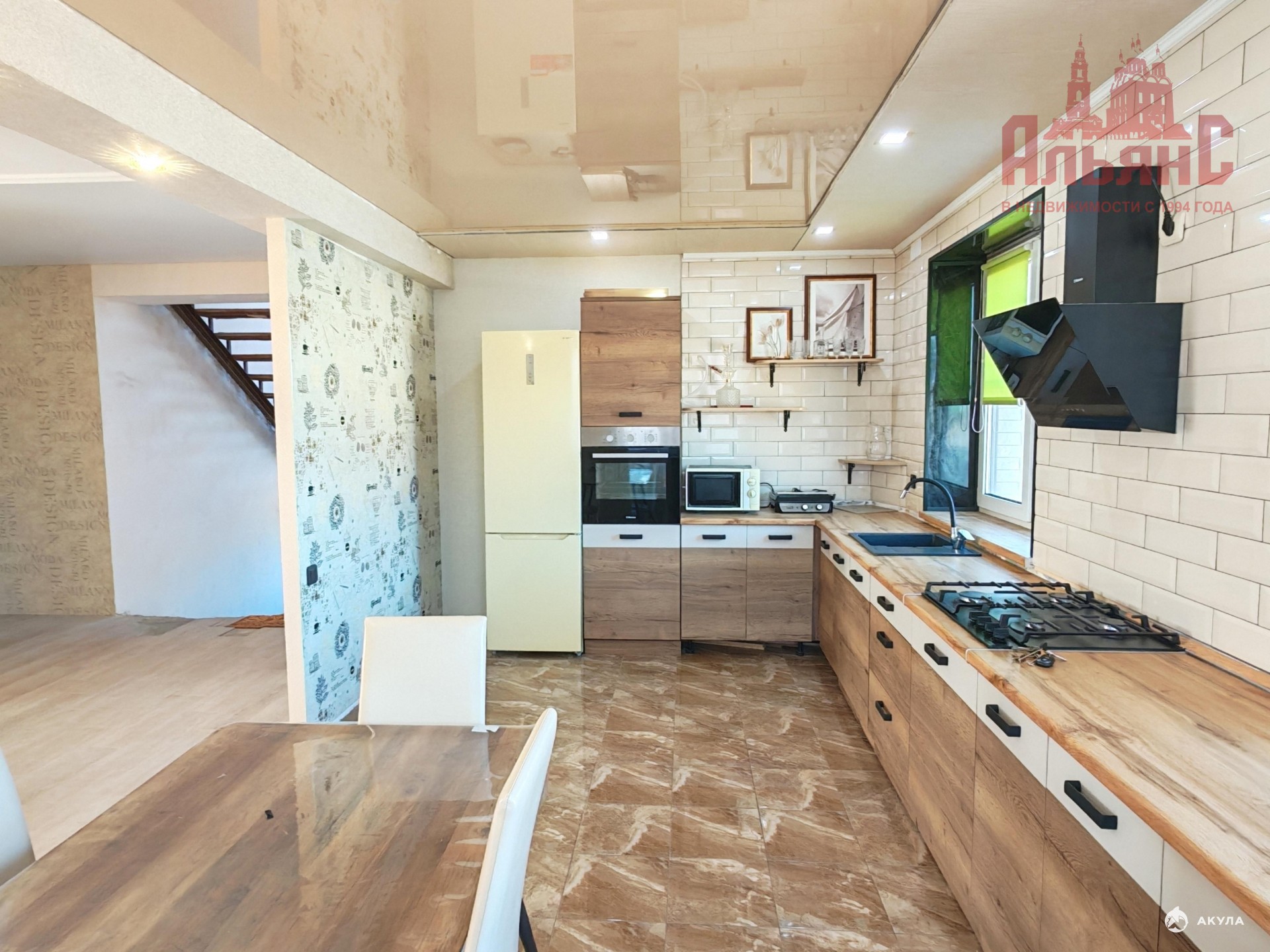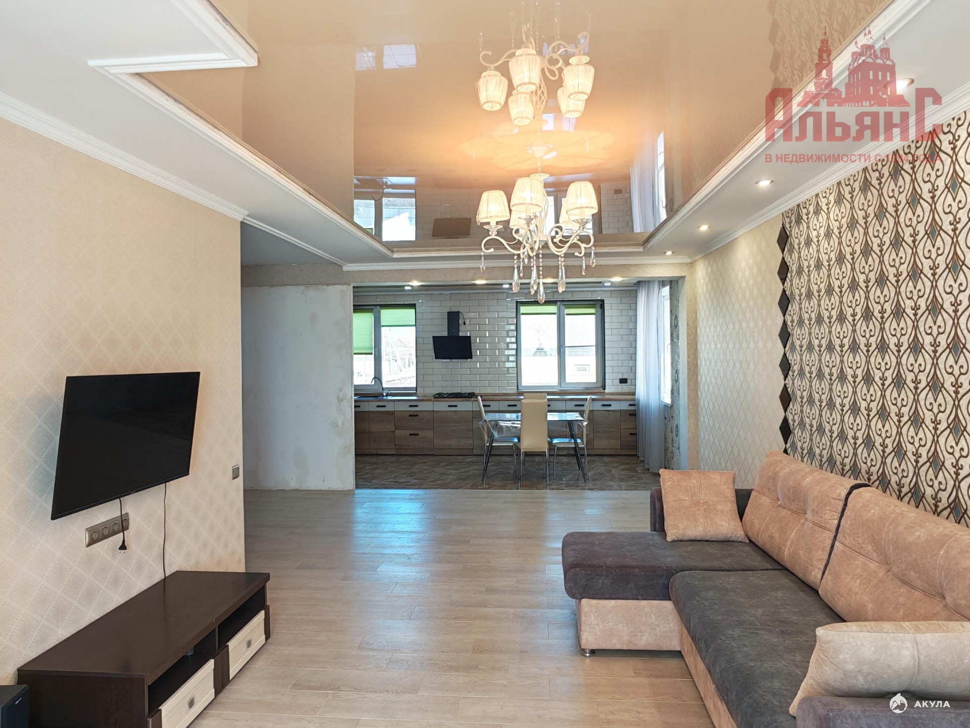 - Кухню-гостиную, где хватит места и для приготовления еды, и для дружеских посиделок. Вся мебель и техника остаётся;