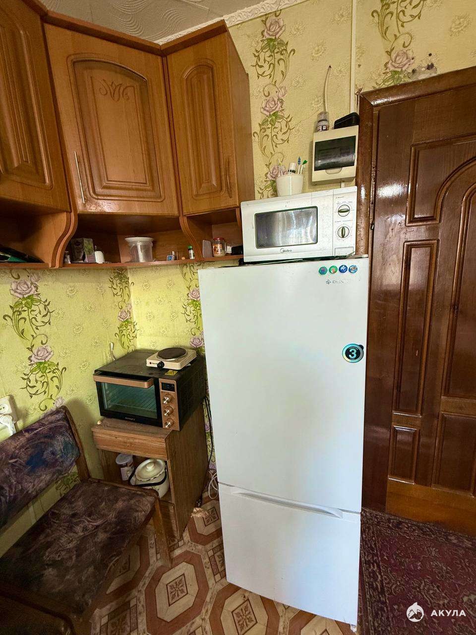 В комнате установлено пластиковое окно, есть сплит система, холодильник, духовая плита, микроволновка, утюг- все останется новым хозяевам. Мебель также вся остаётся.