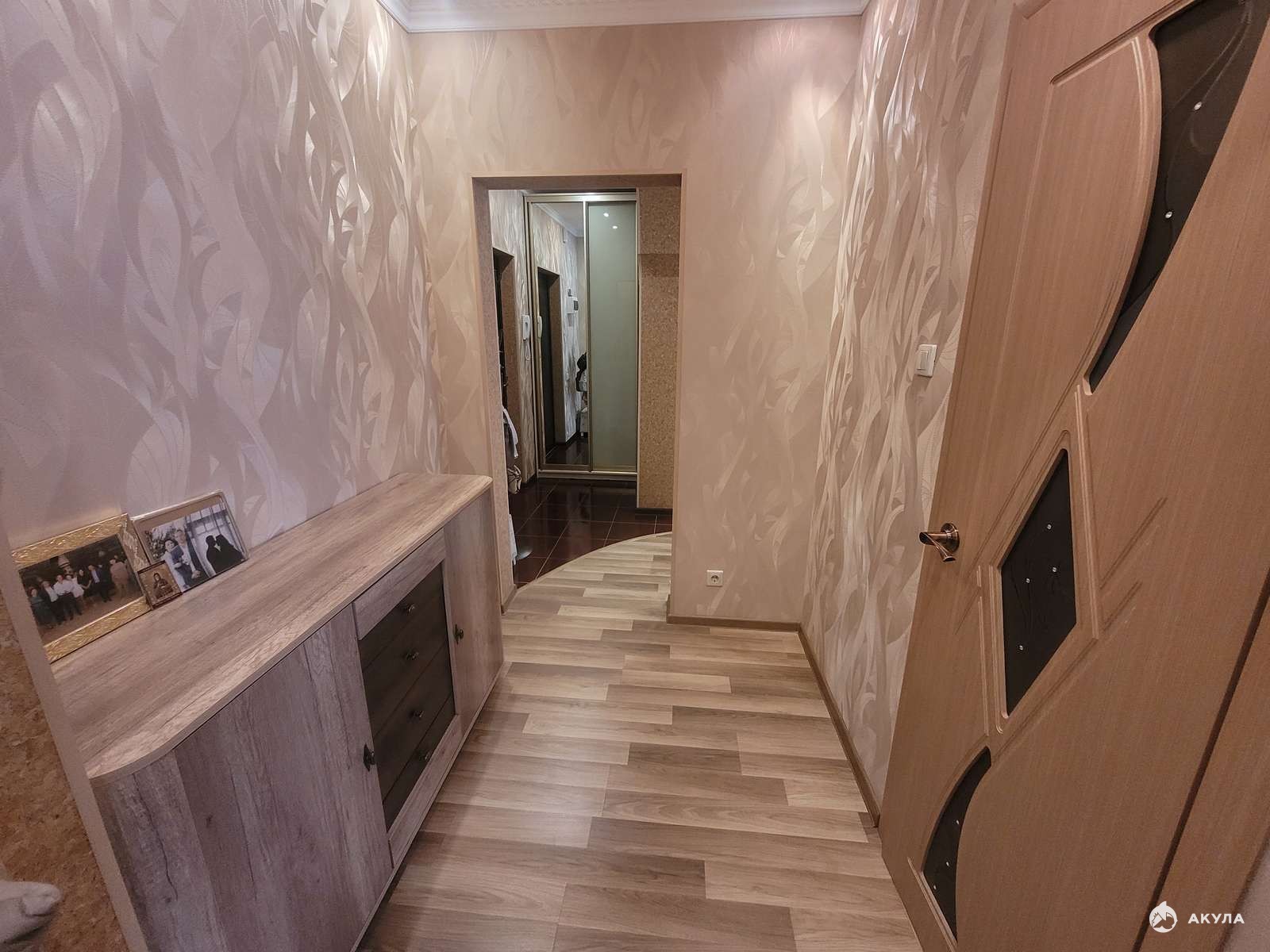 на полу ламинат и плитка,