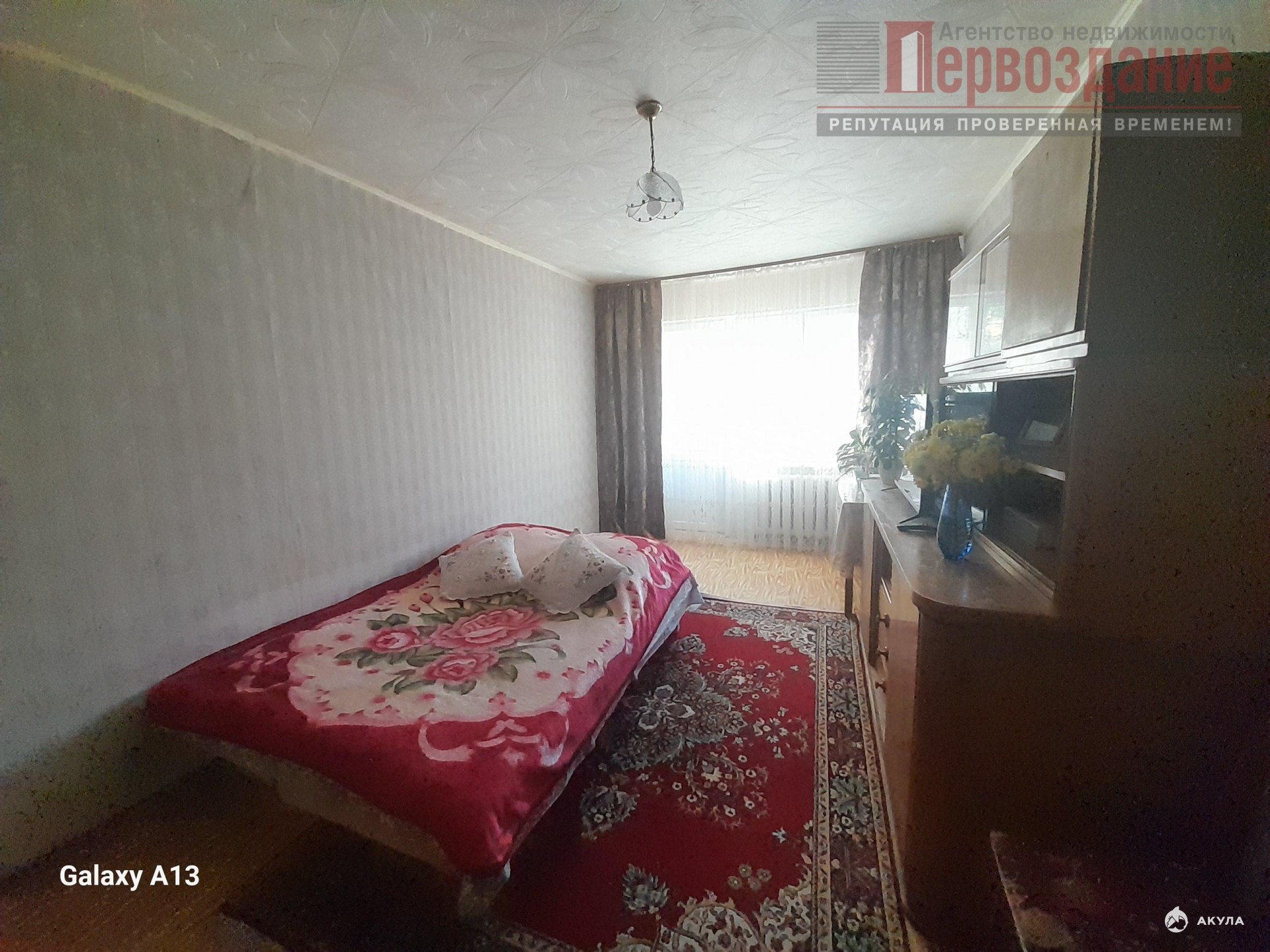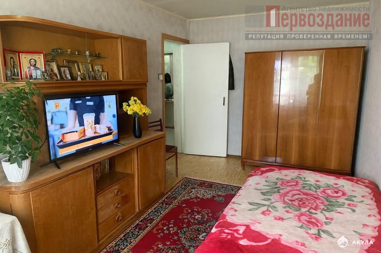 Общая площадь — 31, 9 м², жилая — 18, 4 м², площадь кухни — 6, 3 м². Есть балкон, частично мебель остаётся в квартире.