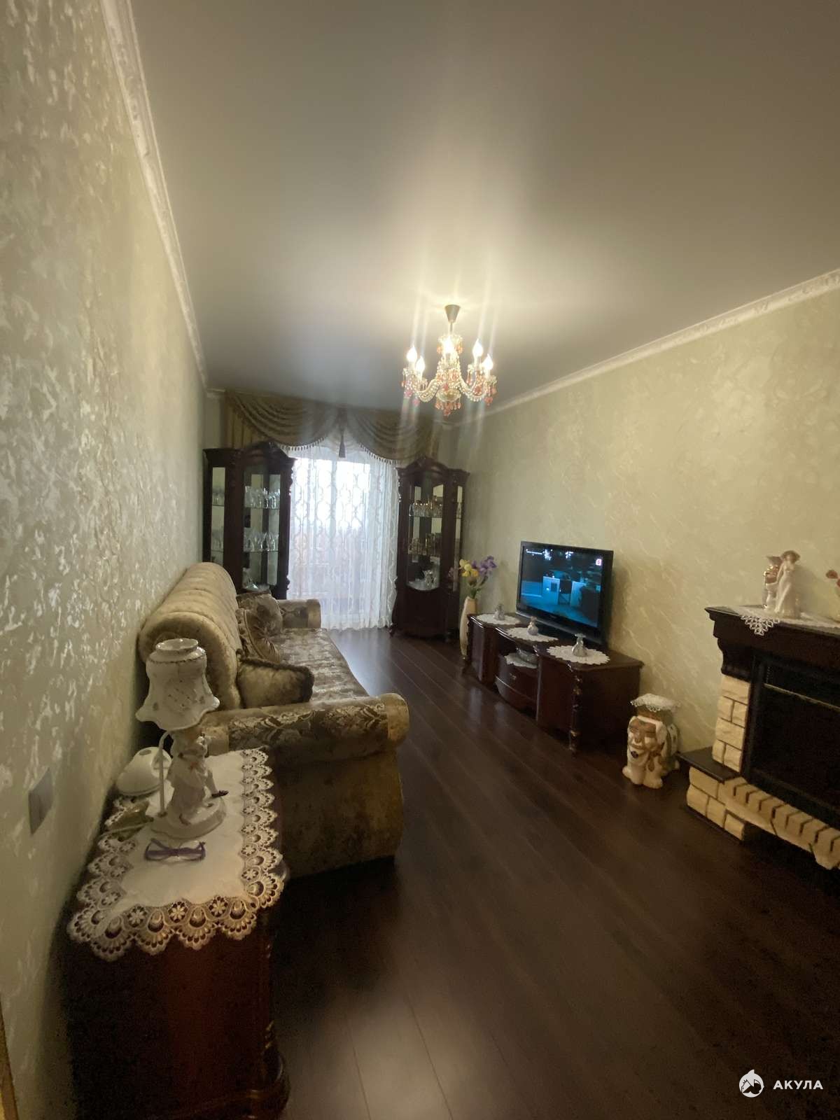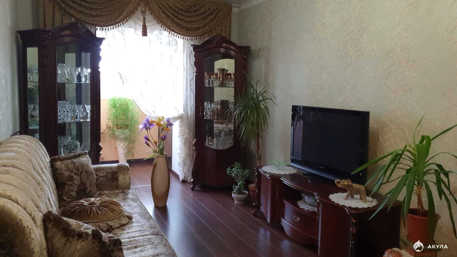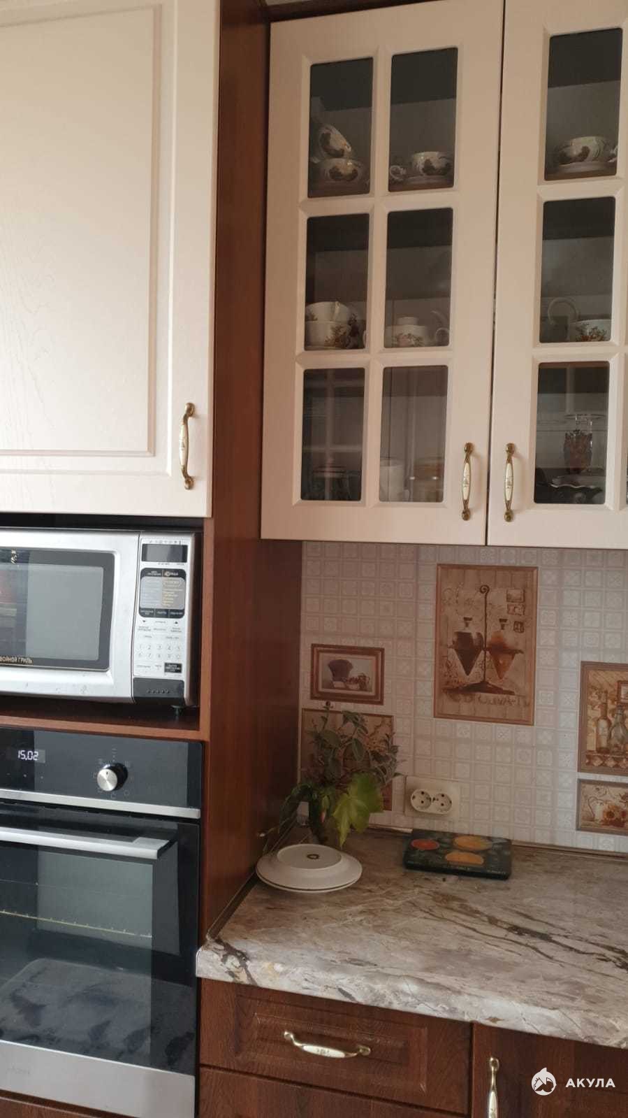 При продаже остаётся кухонный гарнитур, встроенная бытовая техника , сплитсистема , карнизы, занавески.